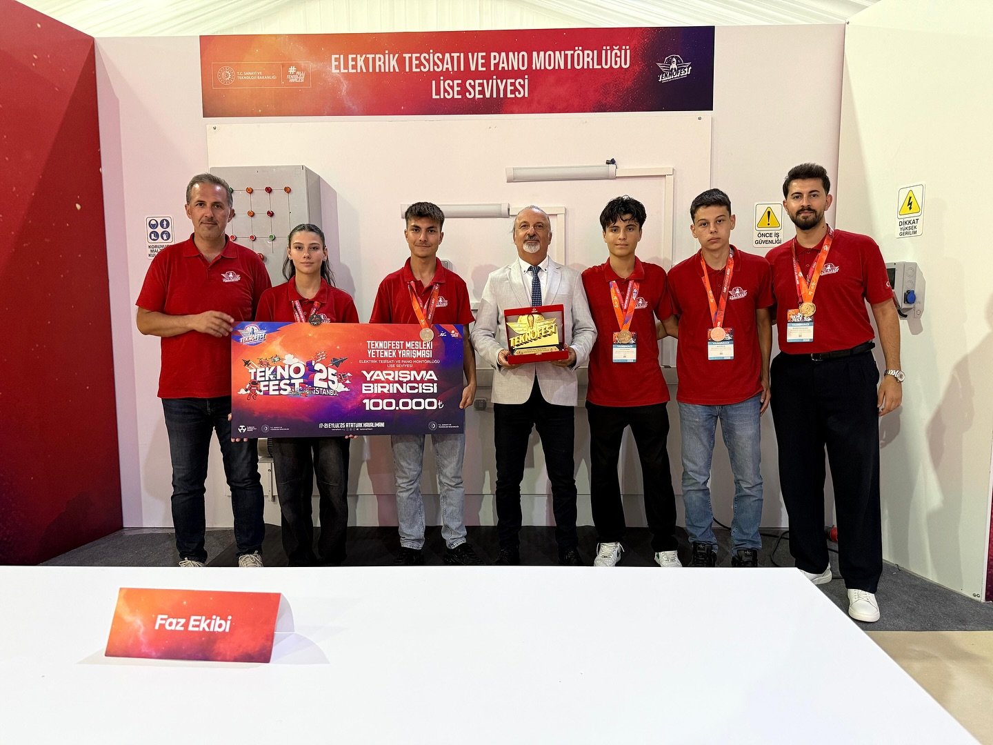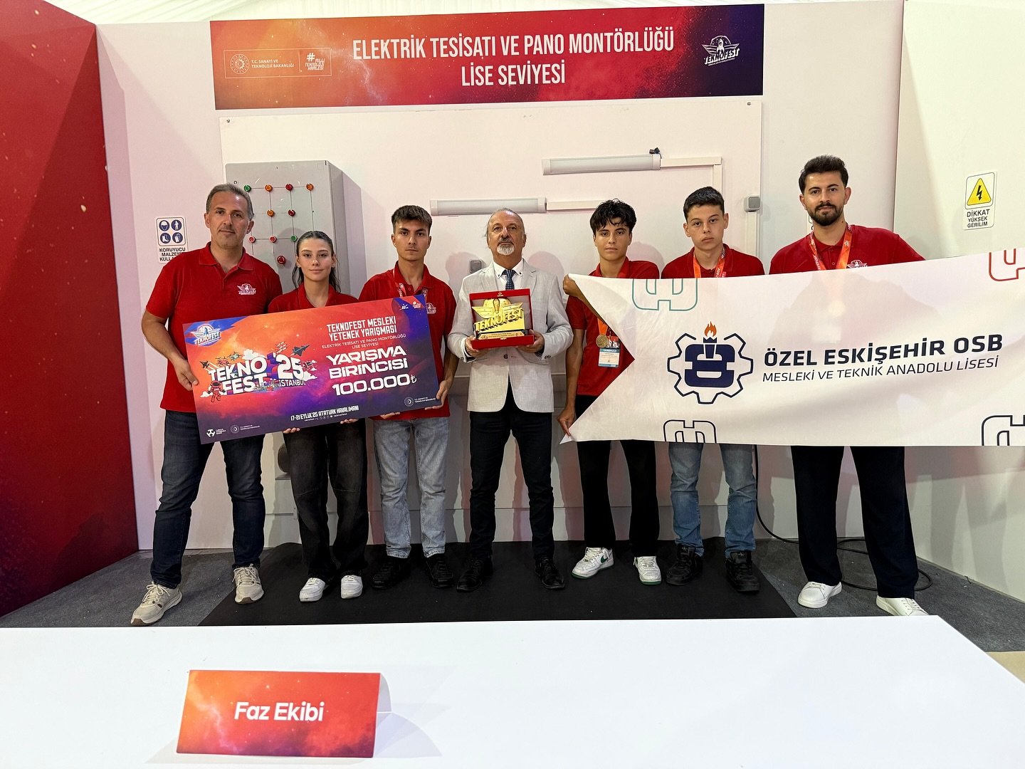 Sanayi ve Teknoloji Bakanlığı ile T3 Vakfı öncülüğünde gerçekleştirilen dünyanın en büyük teknoloji festivali TEKNOFEST, İstanbul Atatürk Havalimanında gerçekleşti. TEKNOFEST 2025’te düzenlenen Mesleki Yetenek Yarışmaları kapsamında, Elektrik Tesisatı ve Pano Montörlüğü alanında Özel Eskişehir OSB Mesleki ve Teknik Anadolu Lisesi öğrencilerinden oluşan takımımız Türkiye birincisi olarak ödül aldı.
