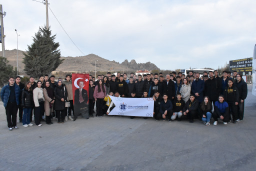24 Nisan 2025'te okulumuzdan 214 öğrenci Kapadokya bölgesinin farklı ve görülmeye değer bölgelerini ziyaret etti. Kapadokya’nın tarihî, coğrafi ve dinî yapısını keşfetti. Tarih Öğretmeni Tuğba KARAKURT ve Coğrafya Öğretmeni Murat ÇELİK'in organize ettiği geziye Okul Müdür Yardımcıları Mehmet Burhan AYTAÇ, Zuhal ŞANGAR ve 19 öğretmenimiz katılım göstererek öğrencilerimize eşlik etmişlerdir. İnsanoğlunun ve medeniyetin kuruluş ve gelişim dönemine dair ilk izler, köy ve kent yaşamı ile doğal güzelliklerin bir arada bulunduğu bölgede, güzel atlar diyarında yeni günü günaydınlayıp balon kalkışları ile karşıladılar. Volkanik dağların püskürttüğü lavlarla oluşan peri bacalarını, vadileri, doğanın oluşumuyla başlayıp insan dokunuşuyla yaratılan peri bacalarındaki mağara evlerini, toprağın hikayesini dinledikleri çanak çömlek atölyesini gezdiler ve vadide ATV turu yaparak güzel zaman geçirdiler.