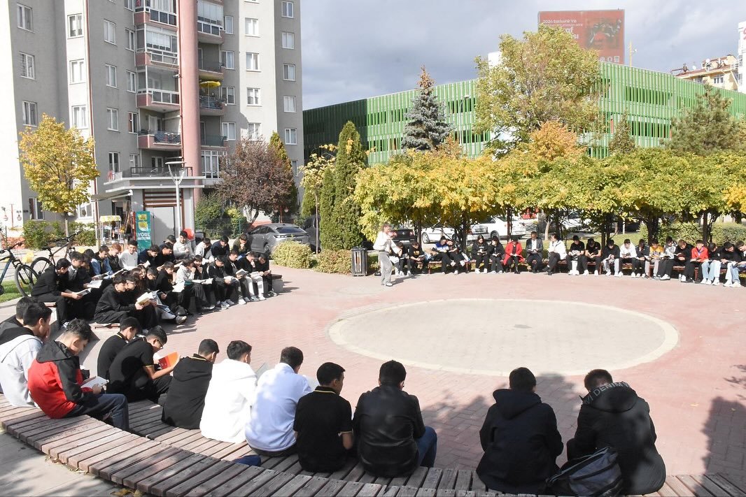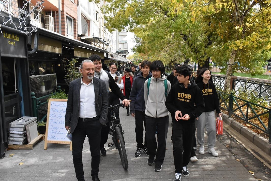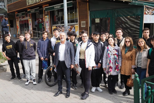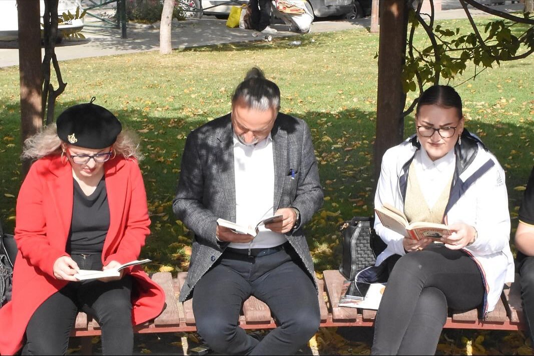 3. GELENEKSEL “EOSB TEKNİK KOLEJ ÖĞRENCİLERİ OKUYOR” ETKİNLİĞİ GERÇEKLEŞTİRİLDİ Okulumuz 9 ve 10. sınıf öğrencileri “3. Geleneksel EOSB Teknik Kolej Okuyor”etkinliğine katıldı. Türk Dili ve Edebiyatı Öğretmenimiz Emel ADIGÜZEL’in organize ettiği etkinliğe öğrencilerimizin yanı sıra Okul Müdürümüz Sayın Bülent SEĞMEN, Okul Müdür Yardımcılarımız Sayın Gönül TÜRÜT KESİM ve Sayın Mehmet Burhan AYTAÇ ile okulumuz öğretmenleri katılım sağladı. Okumanın önemine dikkat çekmeyi, okuma farkındalığı oluşturmayı, ekrandan uzaklaşarak dijital dünya yerine gerçek dünyada kitap okumaya gönüllü olan gençlerin de var olduğunu göstermeyi amaçlayan etkinliğimiz Adımlar Kitabevinde başladı. Adımlar Kitabevi ev sahipliğinde 9. sınıf öğrencilerimizin okuduğu “Gökyüzü Arayan” isimli öykü kitabının yazarı Sayın Mesut DOĞAN ve samimi dostu olan Eskişehirli Yazar Sayın Mehmet Ali KALKAN ile söyleşiye katılan öğrencilerimiz, eserini okudukları yazara sorular sorarak keyifli dakikalar geçirdiler. Söyleşi sonunda Okul Müdürümüz Sayın Bülent SEĞMEN, okumanın en önemli alışkanlıklardan biri olduğunu belirterek teknoloji çağında bu alışkanlığa sahip olmaya devam etmenin gerekliğini vurguladı ve Yazarlarımız Mesut DOĞAN ve Mehmet Ali KALKAN’a ve Moderatör Öğretmenimiz Emel ADIGÜZEL’e teşekkür ettiler. Ardından Okul İdarecilerimiz, öğretmenlerimiz ve öğrencilerimiz 2. durakları olan Uluslararası Eskişehir Çocuk ve Gençlik Tiyatroları Festival Alanı’nda toplanarak hep birlikte kitap okudular. Çevredeki insanların dikkatini çekerek kitap okuma farkındalığı yaratan Okul Müdürümüz Sayın Bülent SEĞMEN’e, Okul Müdür Yardımcımız Sayın Gönül TÜRÜT KESİM’e, etkinliği düzenleyen Türk Dili ve Edebiyatı Öğretmenimiz Emel ADIGÜZEL’e ve etkinliğe katılan tüm öğrencilerimize teşekkür ederiz.
