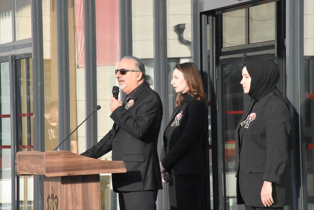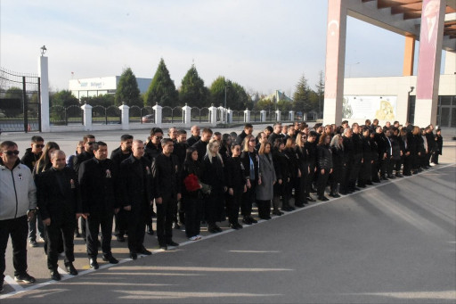09.05’te siren sesleri ve saygı duruşu ile başlayan anma programımızda Okul Müdürümüz Sayın Bülent SEĞMEN’in Atatürk büstüne çelenk koymasından sonra Tarih Zümre Başkanı Tuğba KARAKURT öğretmenimiz “Biz Mustafa Kemal olduk Atam, biz sen olduk, sensizlikle yoğrulduk. Geleceğini bıraktığın Cumhuriyetin ellerinden sıkı sıkı tutar olduk. Bu toprağın askeri olduk, doktoru, öğretmeni olduk, ilkelerinin hiç yorulmayan bekçileri olduk. Emanetin emin ellerde…” diye başladığı duygusal konuşmasıyla açılış konuşmasını yaptı. Ardından Okul Müdürümüz Sayın Bülent SEĞMEN kürsüye gelerek “10 Kasım’da size Atatürk’ün öldüğünü söyleyecekler sakın inanmayın, bizler EOSB Teknik Kolej ailesi olarak onun fikirleriyle yetiştirdiğimiz çocuklarımızla onu her zaman yaşatacağız. Bugün de -tarihlerin yine bizde 10 Kasım 1938’i gösterdiği günde- yüzlerinizde gördüğüm hüzün ve dik duruşunuzla Ulu Önder’imizin ölmediğine olan inancımı tazelediğiniz için çok teşekkür ediyor ve programda emeği geçen arkadaşlarımızı kutluyor ve büyük ölülerin arkasından yas değil, fikirlerine bağlılık gerektiğini bir kez daha hatırlatarak sözlerime son veriyorum.” dedi. Anma programımız idaremiz önderliğinde öğretmenlerimiz, katılan velilerimiz ve öğrencilerimizin Atatürk büstüne karanfil koymasıyla son buldu.