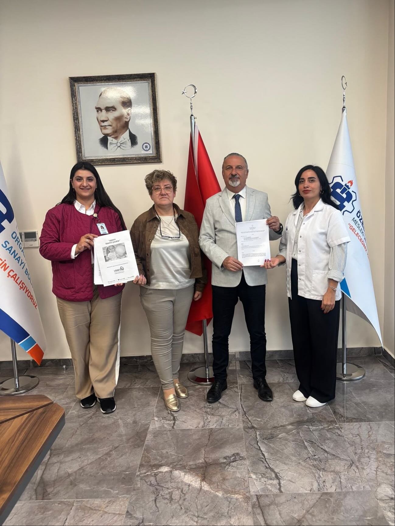 Kimya öğretmenimiz Gurbet YILMAZCAN ve Okul Müdürümüz Sayın Bülent SEĞMEN’ in önderliğinde LÖSEV İl Koordinatörü Yelda İLKER ve Kıdemli İnci Proje Personeli Zeynep TUNCER’le imzalanan bu protokol ile LÖSEV’e okulumuz tarafından hem alan tahsis edildi hem de projeye gönüllü öğretmenlerimiz ile öğretmen desteği verilmiş oldu.
