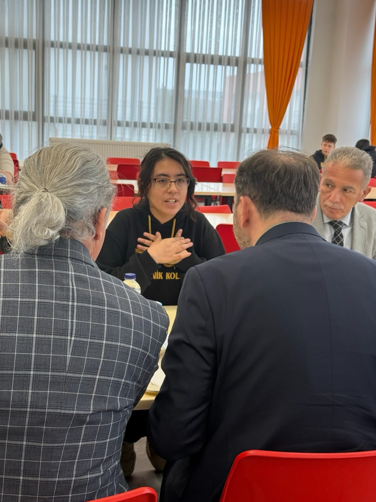 Ziyaretin devamında Doç. Dr. Mehmet DİNÇ ve beraberindeki misafirler, okul yemekhanesinde; Okul Müdürü Bülent SEĞMEN ve Müdür Yardımcısı Gönül Türüt KESİM’in katılımıyla ağırlandı.