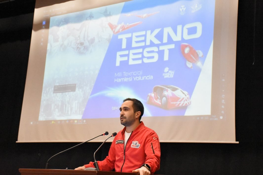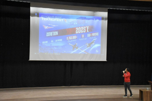 Programın ikinci bölümünde söz alan Anadolu Üniversitesi Teknofest Kulübü Yönetim Kurulu Başkanı İbrahim Yücel TOSUN üniversite öğrencilerinin Teknofest süreçlerinde yürüttükleri projeleri, takım çalışmalarını, başarı hikâyelerini ve lise öğrencilerine yönelik fırsatları aktardı. Gençlerin yapay zekâdan savunma teknolojilerine, insansız sistemlerden enerji projelerine kadar birçok alanda ürettikleri fikir ve prototipleri anlatarak öğrencilerimizin teknolojiye olan ilgisini daha da artırdı.