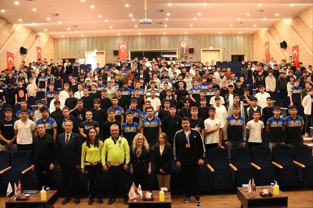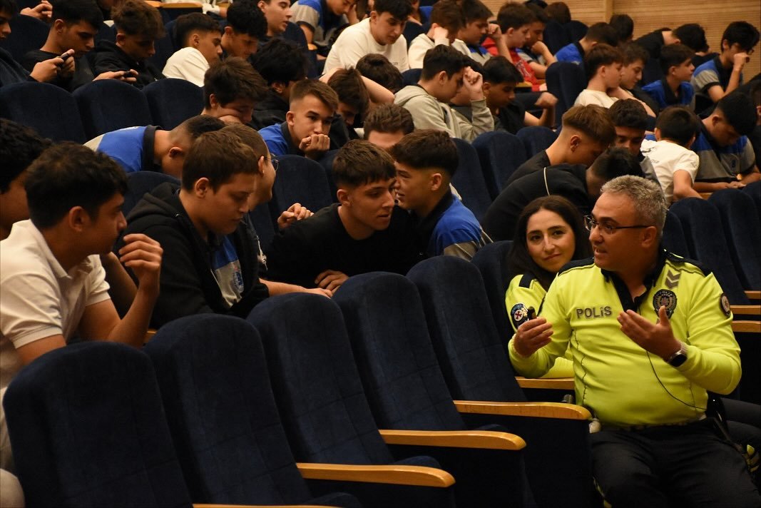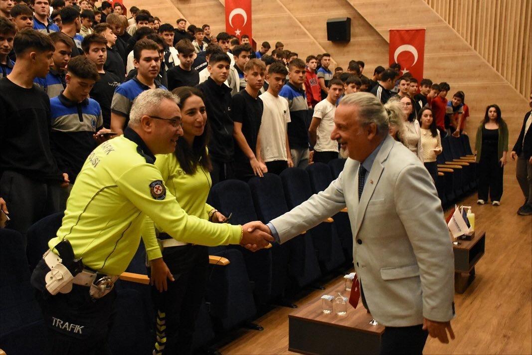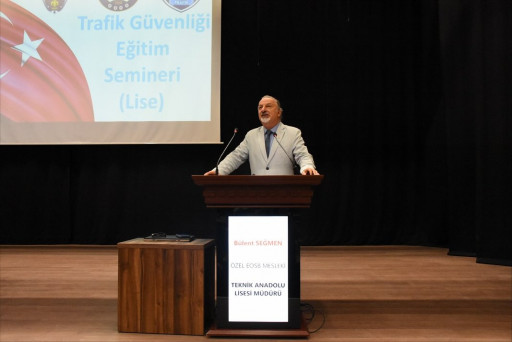 Okul Müdürümüz Sayın Bülent SEĞMEN’in “Çok hayati bir konuyla karşı karşıyayız, bu konu hepimizin çok önem vermesi gereken bir konu ve can güvenliğimiz için öncelikle trafikte karşı tarafın can güvenliğini düşünmeli ve kurallara uymalıyız, İl Emniyet Müdürlüğünden gelen konuklarımıza sizleri bu konuda aydınlatacakları için teşekkür ederim, hepimize iyi bir seminer diliyorum.” diyerek açılışını yaptığı programda Eskişehir İl Trafik Eğitim Şube Sorumluları Sayın Muhammet Ali YILMAZ ve Sayın Yeşim SOLUK öğrencilerimize trafik güvenliği konusunda eğitim verdi.